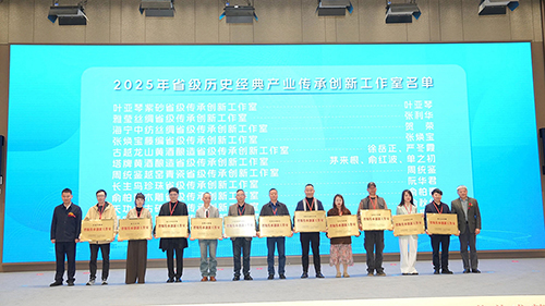 4月24日,第十四届中国(浙江)工艺美术精品博览会在浙江丽水盛大开幕。会上举行了2025年浙江省历史经典产业传承创新工作室授牌仪式,海宁中纺丝绸工作室获正式授牌。